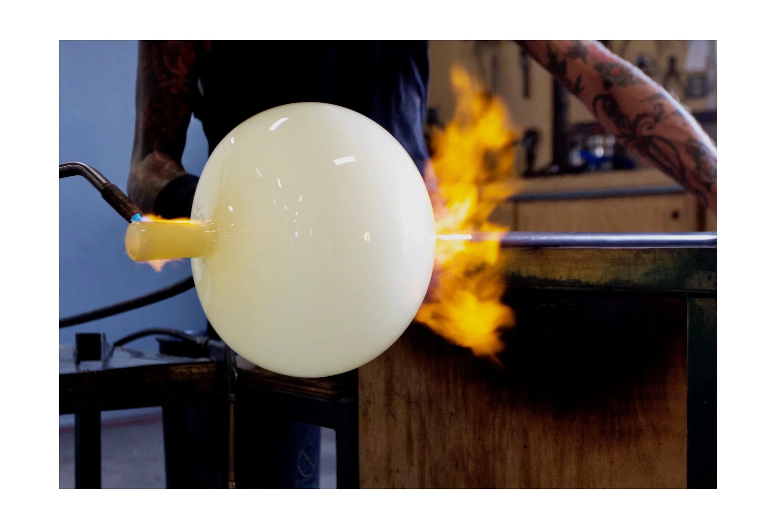 The studio is located in a 4,500 square foot building in El Segundo and is equipped with two furnaces, four glory holes and four annealing ovens.